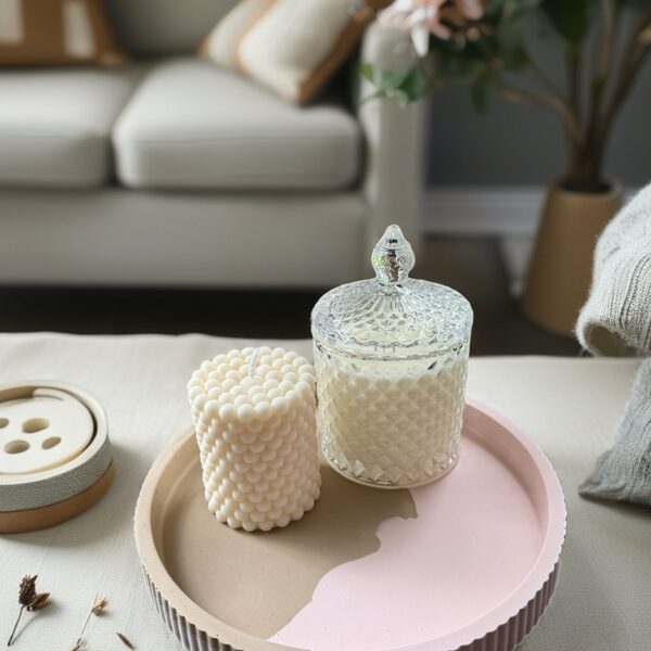 Elegants un praktisks akrila sveču paliktnis, kas radīts ar rokām. Izturīgs, viegli kopjams un ideāli piemērots sojas vaska svecēm vai dekoratīvai kompozīcijai.